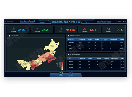 唐山柳林以電折水分析平臺是一種創新的農業灌溉用水計量監測系統,它?通過研究耗電量與取水量之間的關系,分析確定水電折算系數,進而推算出灌溉用水量?。該平臺集成了以電折水分析一張圖、GIS地圖、水電置換系統趨勢分析、水電轉化系數關系模型建立、每日用水信息分析報表等功能,為機井性能分析、潛水泵性能分析提供數據支撐。